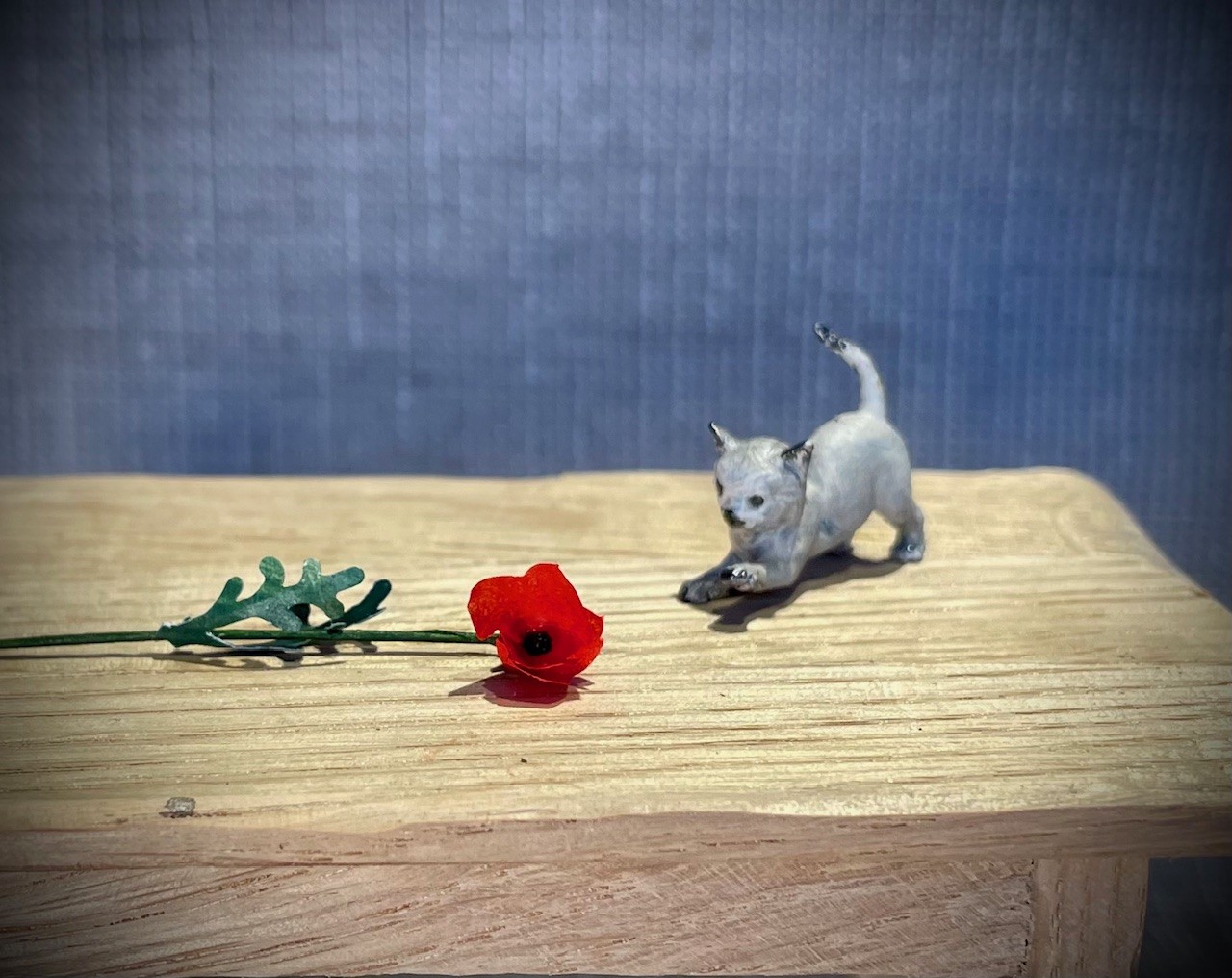 Kleine kitten spelen op de vloer. Het katje is gemaakt van Resin en ongeverfd