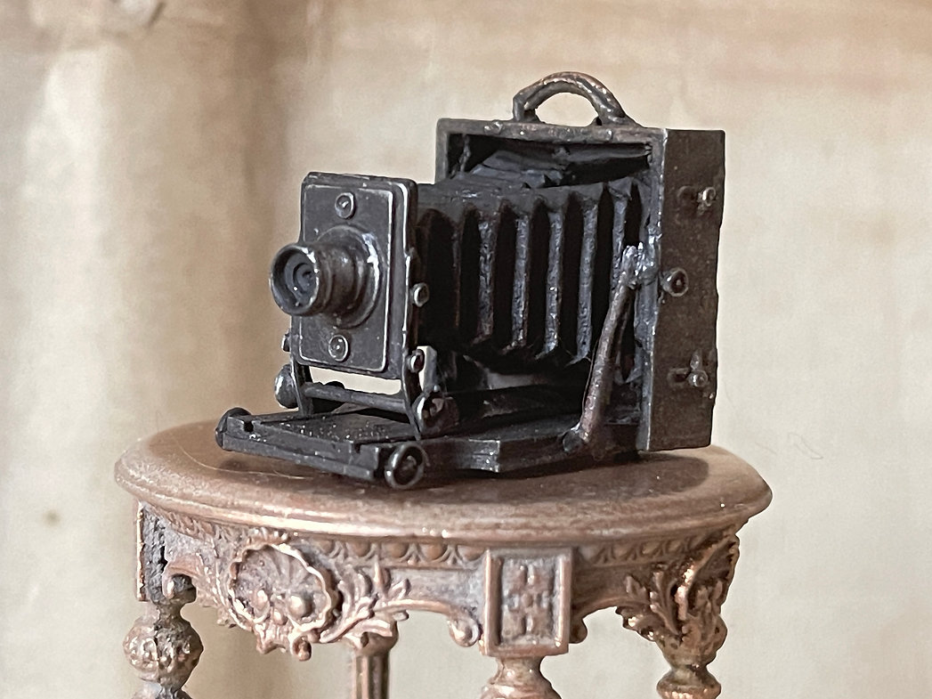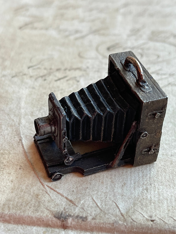 A step away from my usual 18th century offerings is this rather lovely victorian camera. It comes in 4 sections but does not include a base. It would look wonderful in an office where maybe the occupier has a pile of old film and some photographs ready for framing or filing. I always feel that these types of item lend themselves to story telling. Not only can you indulge your love of all things mini but by adding such items to a room you begin to create a wonderful story. Who owns it? Why do they own it? What do sort of photography do they take? Ideas and imagination are endless and so much fun.