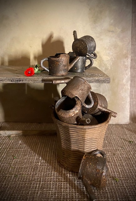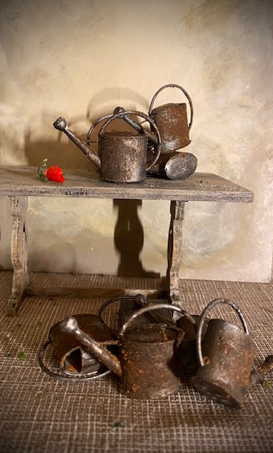 Both wateringcans are painted and about 3 cm high