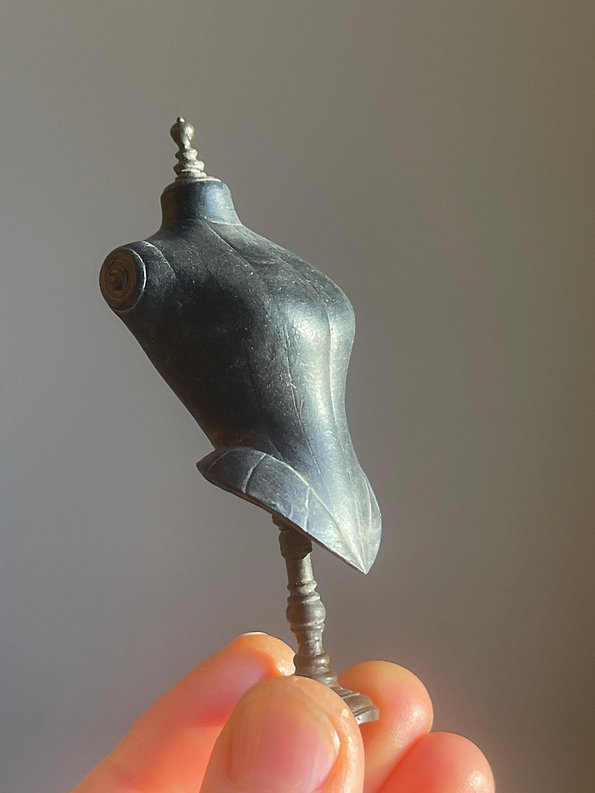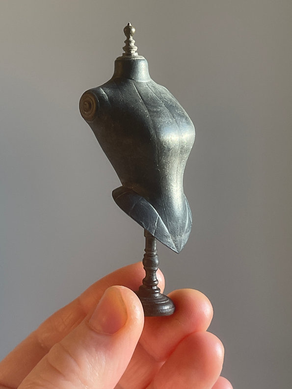The concept of the wasp waist was to wear a corset so extreme that it deformed the wearers waist. As a costumier (in a previous life), and having had the pleasure of making historical corsets, I am fascinated by this social history. Clothes were cut on a stand and so the mannequin had to reflect the shape of the wearer when she was wearing the corset. This is by no means the most extreme example of a wasp waist mannequin.
