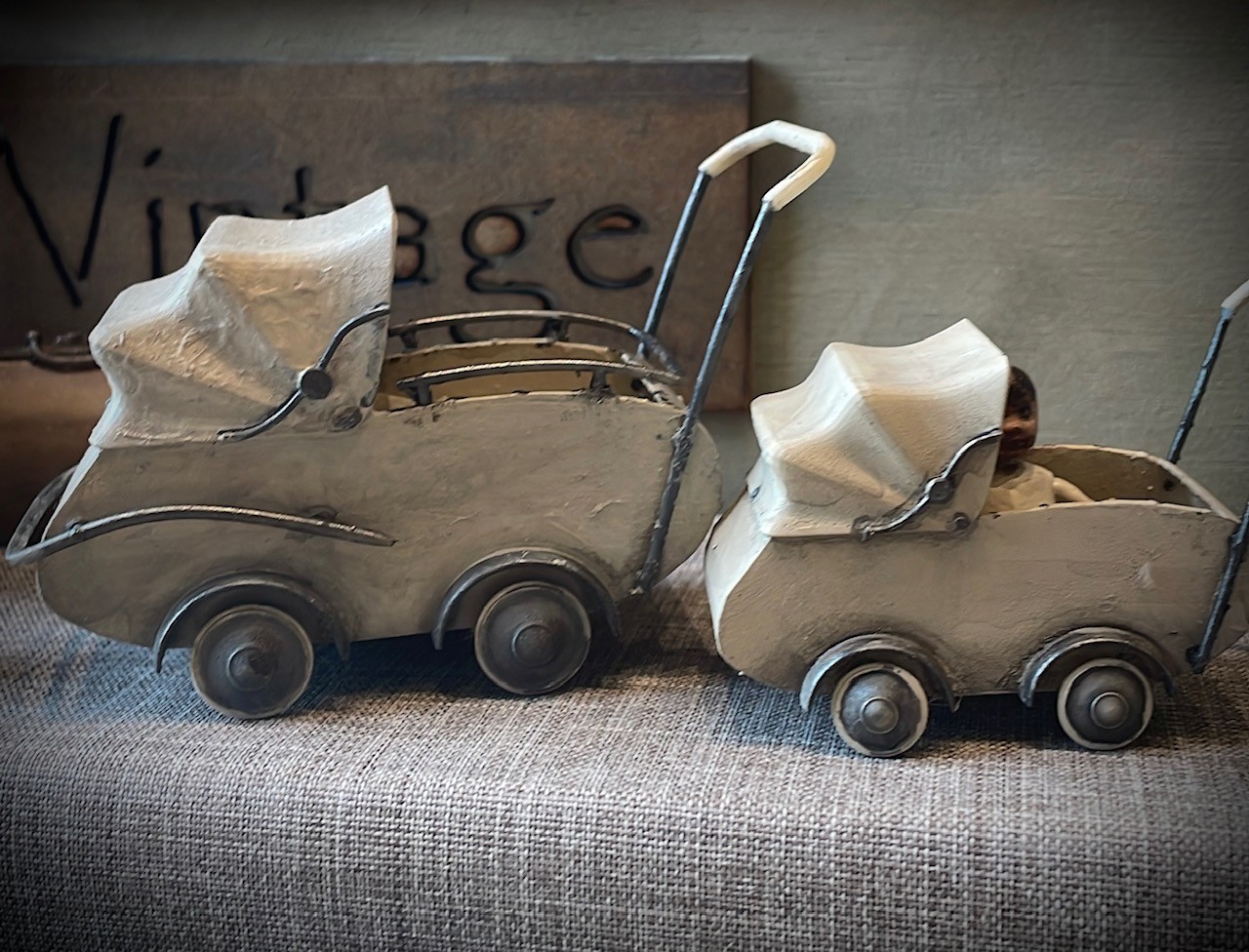 An adorable copy from mum's pram. specially made for the little mum and her dolls. This one you find 1;1 in our living room which our granddaughter loves to play with it as did i when i was little. A bit of nostalgia brought back and now available 1;12 for your house with mini's.