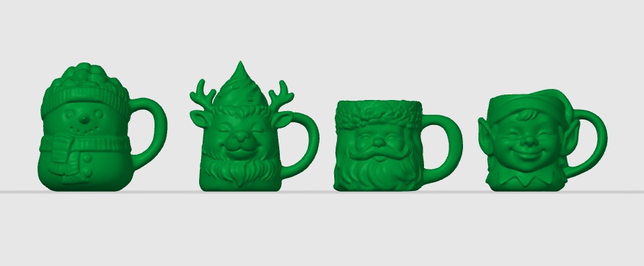 Kerstmokjes verkrijgbaar met 4 verschillende gezichtjes (Elf, Rendier, Kerstman en Sneeuwman). Allemaal gemaakt van resin en ongeveer 12 mm hoog. De mokjes zijn ongeverfd.