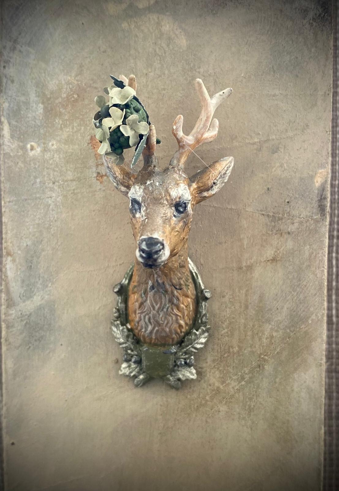 Hertenhoofd-trofee, ontworpen door Alison Davies en geprint door Mini Vintage. De trofee is 55 mm hoog en gemaakt van resin.