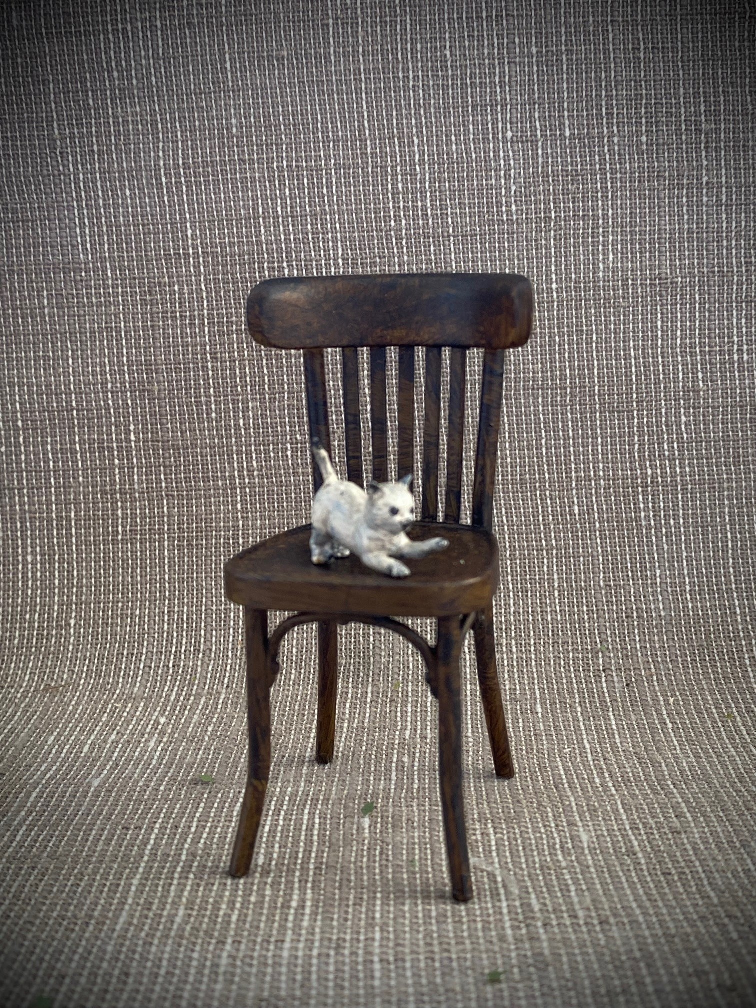 Kleine kitten spelen op de vloer. Het katje is gemaakt van Resin en ongeverfd