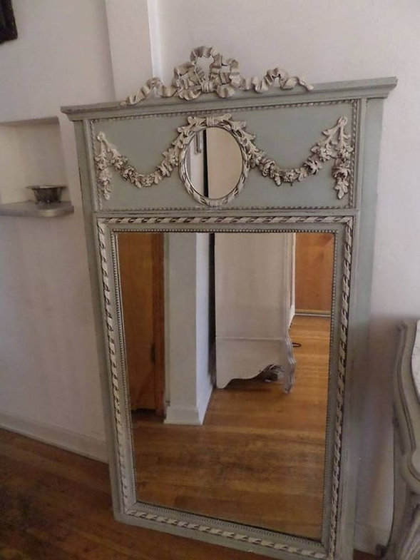 The original trumeau mirrors were set into wood paneling, or boiserie (bwah-zer-EE), the fancy carved wall-covering of choice in the 17th and 18th centuries. Glass was an expensive resource so at first it was unusual to have even small mirrors set into the decor. As mirror glass became easier to produce in larger squares, it would occasionally be incorporated into paneling.