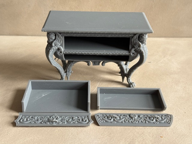 Het originele ""Marquetry"" (het patroon), dat gemaakt zou zijn van ingelegd hout of verguld metaal, is gereproduceerd zodat het wordt verhoogd. Hierdoor kunt u het patroon eenvoudig overschilderen als u het in een contrastkleur zoals goud wilt accentueren.